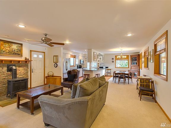This peaceful, quiet property will enrich as you begin living in the well-maintained, beautiful home that faces south. Many trees, flowering shrubs & bulbs to enjoy while relaxing outdoors. Raised garden beds & irrigation water will keep the plants healthy. Elegant entry, updated kitchen, all bathrooms remodeled & plenty of storage in this unique home. Detached garage has 1368 sq ft. with 3 car stalls, separate shop & finished/heated room. So much here & incredible privacy, too! Green house!
