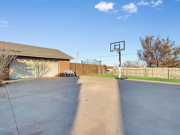 FANTASTIC FIND ! This Beautiful 4 Bed 3 Bath home features a Large Open Living Room with Vaulted Ceiling, Fireplace and Wood Beams. The Open Dining and Kitchen is just off Living and has a great space to entertain and feed a large family. Kitchen has ALL NEW APPLIANCES including French Door Refrigerator, Dishwasher, Trash Compactor and DOUBLE OVENS with Air Fry, Convection and more ! Kitchen has multitude of Cabinets and Large Pantry. Down the hall you will find the Bedrooms. Two guest bedrooms are connected with a very nice Jack and Jill setup. Another additional Bedroom has access to private bath and this room can also double as a Second Living Area, Home Office, Playroom or more ! The Master Suite is conveniently located at end of hallway and features a Huge Bathroom with Double Vanities, Shower, Jacuzzi Tub and TWO WALK IN CLOSETS ! Garage has Bonus Storage and Basement, Big Central Utility Room with Storage and TONS OF EXTRA BONUS STORAGE throughout home ! Large Back Yard has Wood Fence with Pipe Rails and Poles and Concrete Ground Border. NEW HVAC . Front covered porch is the perfect place to catch an Oklahoma sunset and the Back Patio has nice covered area for enjoying the big back yard. This Property has been very well taken care of and is MOVE IN READY. Property sits at end of Housing Addition for minimal traffic and super quiet area. CALL NOW ! Let's find YOU a new place to call HOME !