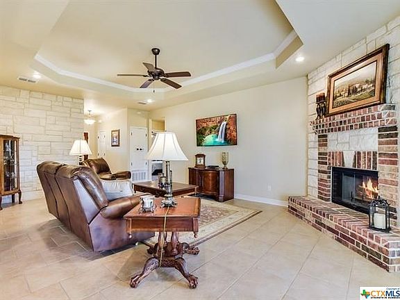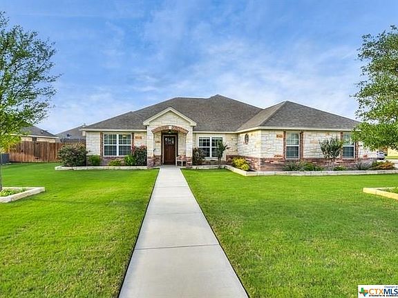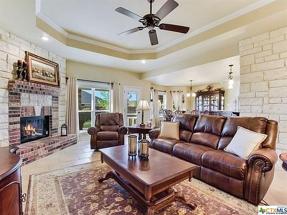 Simply gorgeous single-story, semi-custom home situated on over a quarter of an acre in quiet community. Unexpected features like stone accent wall and coppers sinks. Expected features include open design, tray ceilings, crown molding, and soft recessed lighting. Cushy carpet in your bedrooms and easy care tile floors everywhere else. Spacious Study with built in cabinets. Gourmet Kitchen with cooktop, built-in oven, granite counters, and breakfast bar. A true Master Retreat with sitting area and spacious spa-like bath with soaking tub, walk-in shower, and 2 Master closets. Enjoy quiet sunsets by the fire from your firepit. Entertain on your oversized covered patio. Or simply relax under your pergola. Custom built workshop with electricity, double doors, and sidewalk to front drive makes your next project a breeze. A short drive to the newly arriving grocery store and convenient to I-35. Come see what this immaculate home has to offer, inside and out, for yourself!
