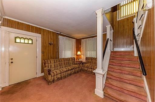 Here is a chance to own a piece of history. This 5 bedroom and 1.5 bathroom home boasts an open wrap around porch. Formal living and dining room. Family room boasts a brick wood burning fireplace. New kitchen with granite counter tops, wooden cabinets. Laundry room off of kitchen. Beautiful hardwood moldings around the home. The master bedrooms features a sitting room and and full bathroom. 4 bedrooms can be found on the second floor, along with an office. The finished attic also has another bedroom and extra room. Full basement. New 200 amp electric panel. New 1 yr furnace. Alarm system with fire detectors included on every floor. New plumbing throughout the home. Detached 2 car garage with cement block and screened in sitting room. Large 100x200 lot with patio and circular driveway. Solar panels (lease transferable).