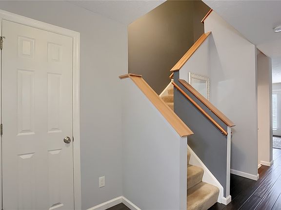 Welcome to this charming, well maintained and updated, end unit townhome that is located by the airport, the Parkway, shopping centers, restaurants, and more. The recently installed windows provide natural lighting throughout the home, and brightens up each room. The main floor has intricate bamboo flooring that leads into the spacious living area, an adorable dining room and kitchen that contains newer appliances. Adjacent to the living area, doors open to a deck that overlooks the beauty of nature and the patio underneath. The upstairs will take you to a full bathroom and 3 sizable bedrooms with closets, including the owner's bedroom that has a remodeled master bathroom and walk in closet. The fully finished basement is roomy and contains a mini bar, laundry room, and tons of storage space that also leads to the open patio.
