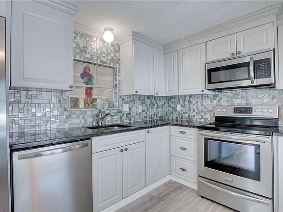 Meticulously maintained & beautifully updated contemporary coastal feel in paradise awaits you! You'll fall in love with this stunning kitchen complete with soft close shaker style cabinets with shell hardware knobs, granite counters, mosaic style glass tile with ocean colors backsplash and new stainless steel appliances. The beautiful move in ready home has a fresh coat of paint both inside and out, new water resistant floors, and new carpeted bedrooms, bottom up - top down blinds, newer roof w/ AMS warranty, new carport & new water heater! The lanai has central air and heat! Boat owners will love the community boat launch & storage which leads directly to the Gulf. This 55+ community has many fun activities, very low HOA fee and is also walking distance to many stores!