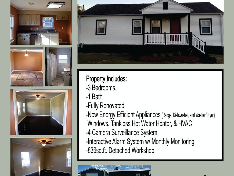 This property has been updated. The property has energy efficient windows, tank-less hot water heater, and appliances (range, microwave, dishwasher, and refrigerator). It also comes with a state of the art interactive alarm system with monthly monitoring included in rent as well as a security camera system. Property also has an 836 sqft. workshop with half bath. $1,900.00 a month, and will also decrease the deposit to $1,900.00.