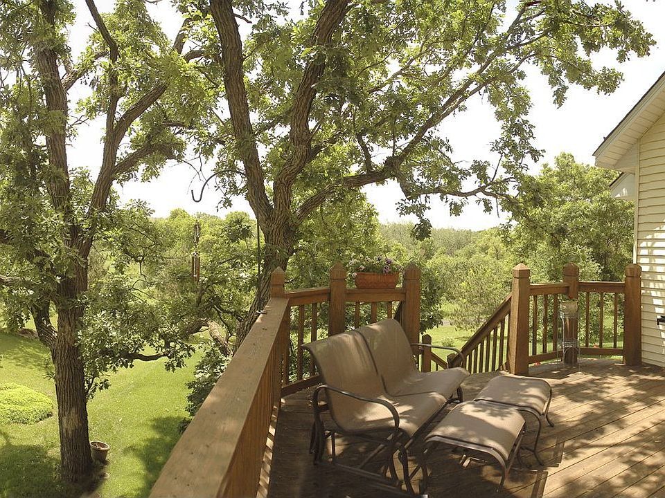 Fabulous rambler located on a prime lot backed up to Coon Creek with a walking path bordering the far back lot line featuring trees, wildlife - a spectacular private lot with beautiful views year around. This main level of this home was totally gutted in 1999 with new everything – kitchen baths, appliances, flooring, walls, doors, hardware. The open layout is bright and sunny and terrific for entertaining. The kitchen walks out to a tree like wraparound deck and the lower level walks out to a gorgeous paver patio with beautiful landscaping and in-ground sprinkler. Besides a main level master suite and bedroom, there is also an office with a wall of built-ins. The entire home features the latest in designer colors. A 6 x 6 mudroom leads to the garage. There are speakers with controls in every room of the home on the main level. The interior décor was designed by a professional interior designer with an eye for style and detail. Pride of ownership shines inside and out. Main Level: eat in kitchen 13 x 20; mudroom 6 x 6; living room 13 x 13; dining room 11 x 13; den 11 x 13; bedroom 12 x 21; bedroom 12 x 13 Lower Level: amusement room 18 x 33; recreation room 13 x 22 bedroom 13 x 16 3/4 bath, Huge Closet, huge storage Lower level freezer and refrigerator do not stay Hot tub does not stay