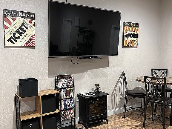 Mounted flat screen tvsOversized great roomBrand new metal roofPlenty of cabinet spaceStone accented fireplaceThree master suitesFully equipped kitchen