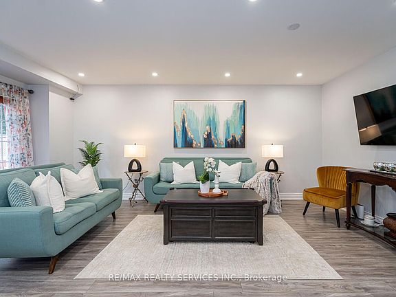 Fully Renovated Semi Detached house near Pickering Town centre. No neighbours behind as house backs onto park and green space. Move in ready and beautifully updated from top to bottom. The finished basement offers an in law suite with a private entrance from the garage, a kitchenette, a full bath, and its own laundry. Perfect for extended family or additional rental income. Inside, the bright open concept main floor features new flooring, pot lights, and a convenient powder room. The renovated eat in kitchen showcases stainless steel appliances, quartz counters, custom cabinetry, and elegant finishes for everyday living and entertaining. French doors open to a massive deck with a built in BBQ gas line for easy summer gatherings. With no neighbours behind, the backyard offers privacy and room to play.Upstairs you will find 3 spacious bedrooms, 2 updated 4 pc bathrooms, and plenty of natural light. Curb appeal continues with a 3 car interlock driveway and professionally landscaped front and back yards. This home delivers style, function, and location. Do not miss this rare opportunity.