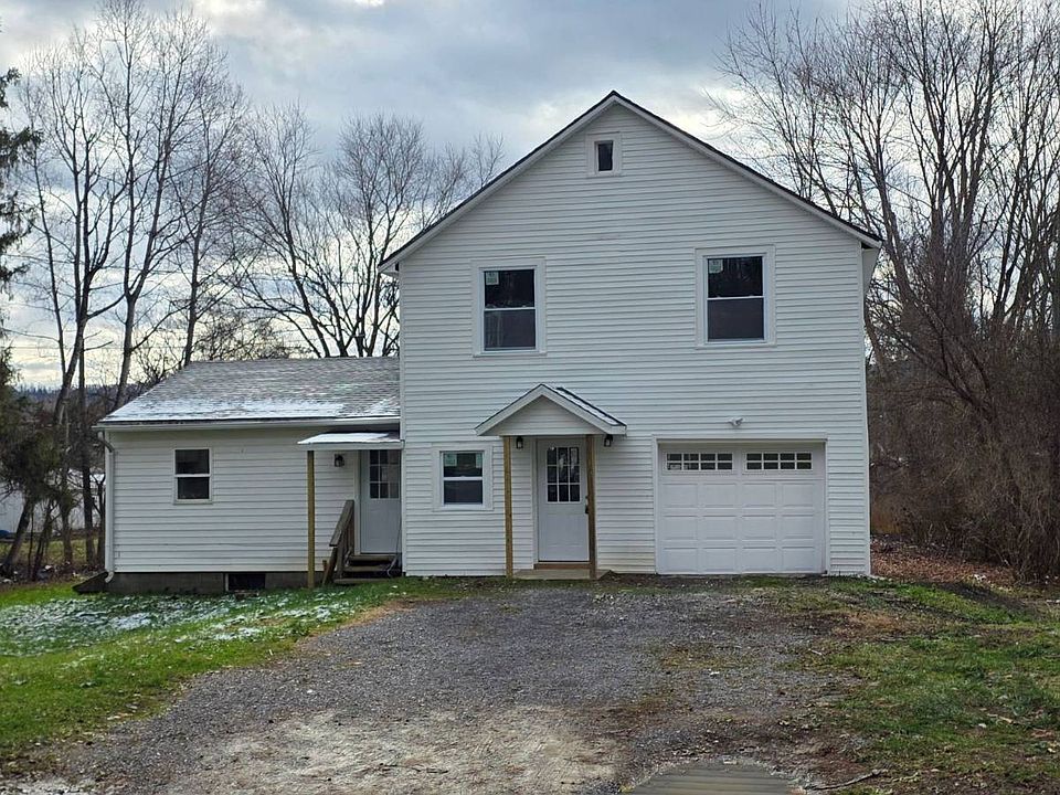 Step into this beautifully renovated single-family home set on a spacious half-acre lot in a quiet, peaceful neighborhood. Every corner has been thoughtfully updated, featuring brand-new flooring, a fully redesigned kitchen, and refreshed bathrooms that bring a modern, inviting feel throughout the home. With 3 comfortable bedrooms and 1.5 baths, the layout offers both convenience and flexibility. Enjoy peace of mind with major improvements already complete-including new windows and a new heating system for year-round comfort. Outdoor living is just as impressive, thanks to a newly built rear deck perfect for relaxing or entertaining. Move-in ready and updated from top to bottom, this home blends comfort, style, and value in a desirable, tranquil setting. Garage door in first photo has been added in editing, real garage door will be installed prior to closing.