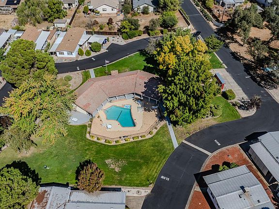 Welcome to Oak Shadows Mobile Home Park. Pride in ownership is obvious as you drive through park. #80 shows well. It features a large kitchen, a living room with fireplace. Two bedrooms, one bath. Home has been painted inside with new carpet. Covered porch off living room and areas on each side of home with two sheds for extra storage. A new roof was installed on home, May 2025. Included in the monthly space fee of $829 is a club house,pool,picnic area,library and exercise room. Plus RV parking. Located close to town, senior center,hospital,shopping and government center. This is a 55 & older community. Seller is forced to sell, due to health. Roof & pest inspections are uploaded.