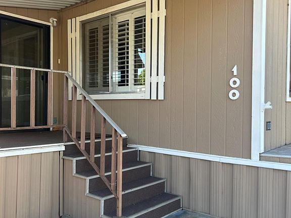 Cute 2 bedroom, 2 bath mobile home located in Oak Shadows Mobile Home Park, a 55+ community. At 1008 sq.ft., this thoughtfully laid out floorplan features 2 Bedrooms with very spacious walk in closets and 2 full bathrooms. There is a galley style kitchen with separate dining area and built in hutch. Sunburst Ovation Wood Shutters throughout, enclosed sunroom, covered front porch and carport, 2 storage sheds, low maintenance landscape on corner lot. Mobile home re-leveled in 2022, with roof, kitchen hood, garbage disposal, and swamp cooler being replaced over the last couple of years. The park offers immaculate grounds that include a large swimming pool and picnic area as well as a club house and full kitchen for parties, exercise facility and small library. In addition, park is centrally located and just minutes away from senior center, government center, hospital and shopping. Park approval REQUIRED. Some flooring will need replacement, sold as. Seller will entertain all offers!