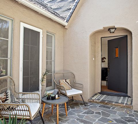 Nestled in quite possibly the most photogenic neighborhood anywhere in L.A., in Glendale's historic Rossmoyne district, is this enchanting 1928 English Cottage with a guesthouse. Sitting in prime Rossmoyne above Mountain, it has an airy floor plan with abundant natural light, a soaring coved ceiling, wood floors, a working fireplace, updated kitchen with quartz counters, an inviting breakfast nook and dining room. Through the hall are two bedrooms, a vintage bath and a third en-suite bedroom. Rear bedrooms overlook the storybook backyard adorned by a breathtaking 50' ash tree that beckons visitors to linger beneath its shade. Beyond the patio is the guesthouse with a kitchen, bath, vaulted ceilings and lots of room to Zoom, work or host loved ones. Carmen Drive the street, is an unrivaled beauty among a sea of beauties, each boasting one breathtaking character home after another. Centrally located with Glendale's award-winning schools, this English rose awaits its next lucky guardians.