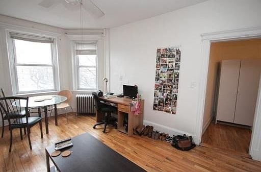 Charming, spacious, sunny apartment with hardwood floors throughout in well-maintained, professionally-managed building. Upgraded bathroom and kitchen with dishwasher; bedroom towards rear of building; large hallway can be used for office, storage, dining. Coin-op laundry in the building. Easy access to Coolidge Corner; one-minute walk to Green line, 3 minutes to #66 bus to Cambridge; close to BU, Boston College, Harvard and Northeastern; Shaws, Trader Joe and Whole Foods; great restaurants, bars, nightlife. Heat and hot water included in rent. Available August 1. Tenant pays first and last months' rents; agency fee of one-month's rent. Tenant pays agency fee of one month's rent.