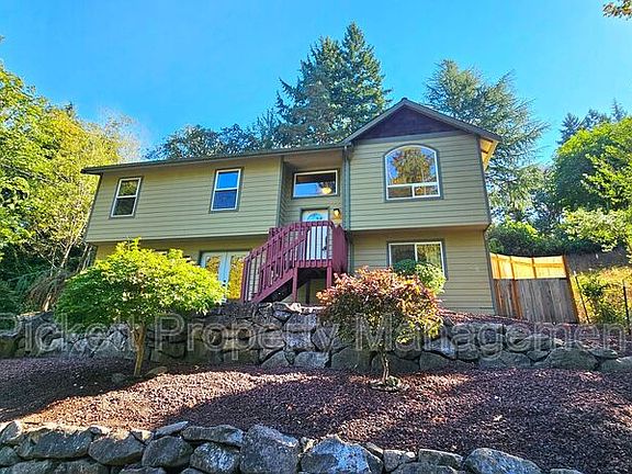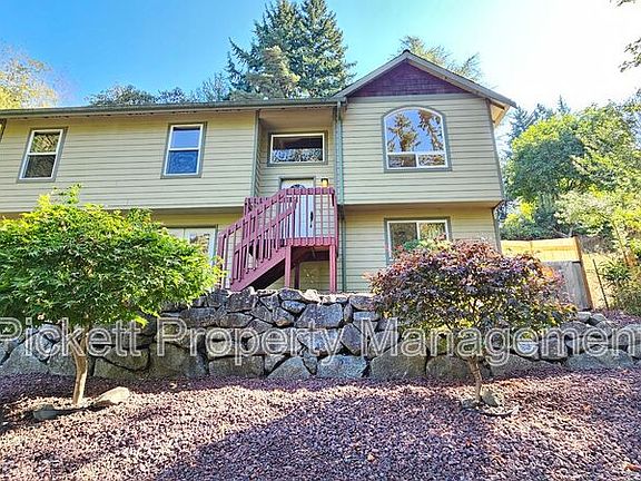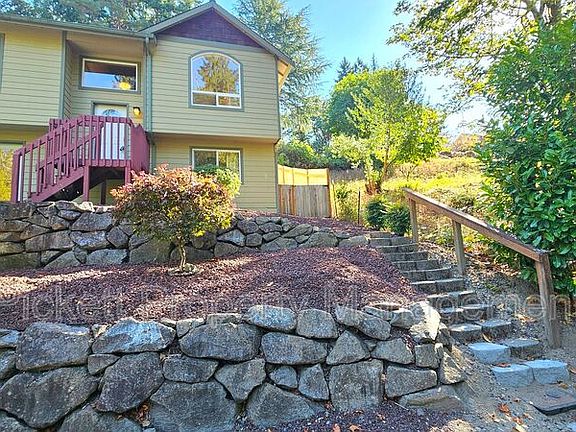 Lovely, contemporary, 4 bedroom, 3 bathroom home sits on a private lot just minutes to downtown Bremerton, PSNS, and Bremerton Ferry Terminal. Custom features throughout include rustic red oak floors, slate showers, white doors, and rosewood trim and cabinets. Open concept living upstairs with spacious kitchen, marble counters, and gas range. Large entertainment area or second living space on lower level with custom closet. A fully fenced backyard offers a private and tranquil setting with a covered deck. A dog may be possible with approved third-party pet screening, an additional $500 security deposit, and $35 monthly pet rent. Yard care is included in the rent.