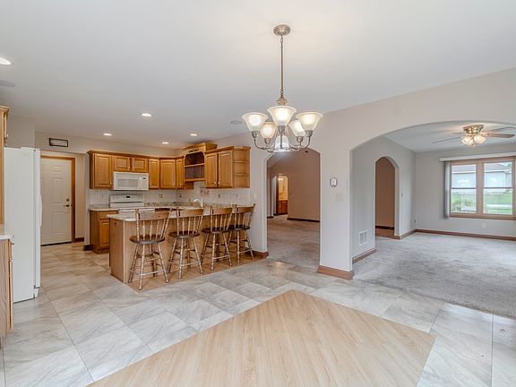 Welcome home to this well kept house close to all Angola has to offer! This home has ample storage throughout! A new 92% Efficiency Furnace installed in December 2024. Enjoy spending time on the patio that has a privacy fence & a retractable awning. The beautiful kitchen has a breakfast bar & dining area. There is ample storage space in the kitchen cabinets & spacious pantry. There is a formal dining room ideal for entertaining or family dinners. There is a spacious living room that flows into an additional room ideal for family overflow. The main bedroom boasts an en suite with a walk-in closet. The main bathroom boasts a walk-in shower, jetted garden tub, and heated floors! The second bathroom has a walk in safety tub and heated floors for a relaxing experience! The laundry room has a utility sink and even more storage! The garage is finished with a stamped concrete floor.
