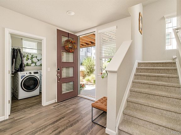 This exceptional end unit at Pearson Grove stands apart as the community’s premier residence—set back from both main roads, privately nestled in the heart of the neighborhood, and oriented south for abundant natural light throughout the year. With windows spanning three exposures—west, south, and east—the open-concept main level is bright and inviting. The expansive kitchen features generous storage, ample counter space, and a walk-in pantry, while the connected dining and living areas create an effortless flow, ideal for gatherings or quiet moments at home. High ceilings amplify the sense of openness, and the oversized deck—unique to end units—offers a perfect retreat for coffee, al fresco dining, or conversation with friends. Upstairs, three bedrooms each feature their own walk-in closet, a rare advantage of this community. Sunlight from multiple directions fills the space year-round, while dual sheer/blackout shades allow for tailored privacy and ambiance. Additional thoughtful touches include a large under-stairs storage area adjoining a main-level closet, a full two-car attached garage with a 220V outlet for electric vehicles, and a laundry area conveniently tucked away from the living spaces to minimize noise. The location itself is unmatched: less than 20 minutes to downtown via 6th Avenue, 15 minutes to Golden, and under 10 minutes to both I-70 and I-25—offering convenient access to the mountains as well as the city. More than a home, this residence was handpicked by its original owners as the standout among all Pearson Grove offerings—chosen for its rare combination of privacy, natural light, and unbeatable convenience.