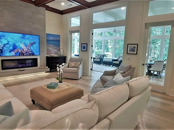 Oversized roomsBeautiful lake viewsSpacious open floor planRich gray center islandShiplap wallsHigh-end stainless steel appliancesLarge primary bath