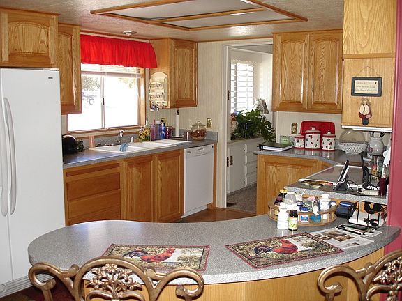 Don't miss this lovely, pride of ownership, triple wide manufactured home on land, located on a corner lot, in desirable Seven Hills 55+ Community. Only $36,00 a year Association Dues. Pride of ownership abounds with this lovely estate. A few amenities include: A unique floor plan, foyer, a large bonus room, formal dining room, living room, built in wet bar, built in curio cabinet, good sized bedroom, a spacious Master bedroom, with separate master bath tub and shower, two sinks, vanity area, new vinyl flooring in the bathrooms, kitchen has a breakfast bar, pull out cabinet, pantry, laminate and carpet flooring, multiple fans throughout, large backyard patio area and a shed. Block wall on two sides. Rod iron gate on side entrance. Finished two car garage. Close to shopping and Domenigoni Parkway. Enjoy senior living at its best!