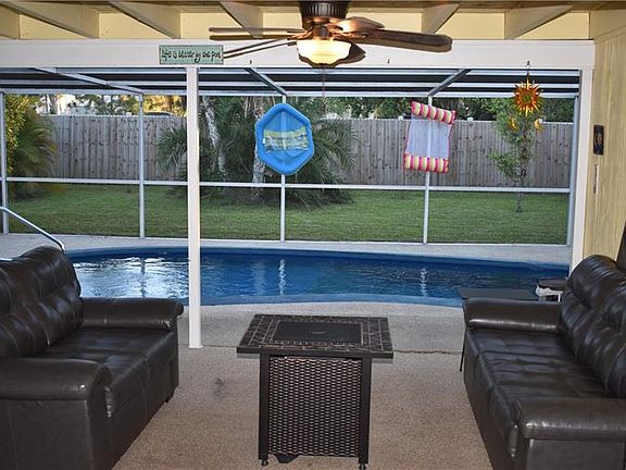 Welcome to this beautiful, well cared for pool home. As you enter the home you are immediately welcomed by the sparkling waters of your own back yard oasis through the large slide away glass doors. These doors open the flow between the interior and the exterior entertaining areas. This home boasts a great 3 bedroom layout with walk in closets in every room. The kitchen, Master bedroom, and the dining area all have patio doors leading out to the screened in pool and covered lanai areas. As you view this home you will undoubtedly notice how well loved this home has been inside and out. You will also notice that the yard is large and fenced in with great landscaping and a large storage shed. If you like to entertain you will love all of the open spaces and great design of this home. Be sure to put this one on your list. You will be happy that you did.