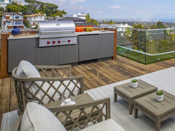 STUNNING SHORT TERM LUXURY RENTAL AVAILABLE FROM APRIL 15TH 2025. SHORT TERM ONLY and FULLY FURNISHED. LOCATED CLOSE TO THE BEACH & SANTA MONICA. SPECTACULAR PROPERTY. AMAZING PACIFIC PALISADES LOCATION, WALK TO THE PALISADES VILLAGE. FULLY FURNISHED RENTAL COMPLETE HOME. This spectacular property located on Monument Street, is a newly constructed, contemporary COMPLETE home and offers breathtaking Pacific Ocean and panoramic city views. Situated in the prestigious Pacific Palisades neighborhood on a quiet street just moments away from the Palisades Village. Home features 3 levels with 5 beds, 7 baths, infinity pool with integrated spa and spacious rooftop deck and elevator. The main level offers an open floor plan with European kitchen, dining room, family room, 1 bedroom and large sliding glass doors with seamless indoor-outdoor living. Upstairs flaunts a fabulous master suite with balcony, en-suite bathroom plus an expansive walk in closet. 1 great kids bedroom with bunk beds plus dedicated office with sofa sleeper.. The basement level includes a large media/game room, laundry and 1 bedroom with en-suite bathroom. Please note some of the furnishings have been upgraded. Please note 1 month minimum stays. Absolutely no pets allowed on the property. Also available to rent for SUMMER starting in from JUNE 2025. SUMMER RATES $45,000 PER MONTH. PLEASE NOTE there is some house construction across the street. . Absolutely no smoking of any kind or parties on the property. $195 check in check out fee. Estimates move out cleaning fee $650. Professional weekly cleaning and renters insurance required.