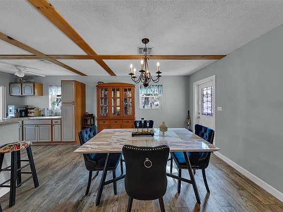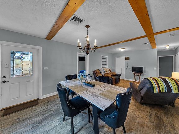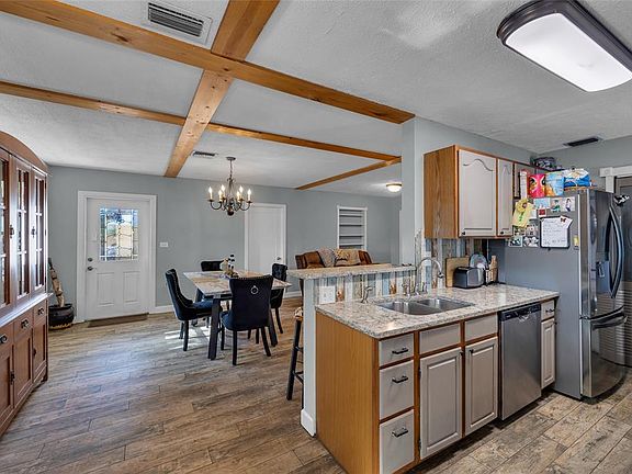 This charming 3 bdrm, 2-b/r single-family home boasts a thoughtful layout, ideal for those seeking extra space for guests or home office. Open kitchen w/ lots of natural light, tons of storage, wood cabinets, quartz counters, all newer appliances (2020-2024), wine cooler, plus attractive wood look tile throughout the main living areas & master bdrm. Versatile Florida room offers additional flexible living space, perfect for year-round enjoyment. Step outside to the spacious backyard featuring 2 covered patio areas, an outdoor bar & dining area perfect for entertaining. There is a lg bonus workshop included w/full electric & ample room for activities. Plenty of room for a pool. All Impact-Resistant Doors & Windows, Metal Roof (2016), Water Heater (2025), & A/C (2019). Best of all, NO HOA!
