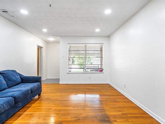 Discover this inviting and affordable home in South Irving, conveniently located next to a neighborhood church and close to schools, shopping, and major highways for an easy commute. With 3 bedrooms, 2 full bathrooms, and two spacious living areas, this home offers comfort, charm, and room to grow. The main family room provides a welcoming space for everyday living, while the second living area features a fireplace surrounded by windows, filling the room with natural light and warmth—perfect for gatherings or relaxing. The retro-style kitchen with its fun blue cabinets adds personality and charm, while the wood floors throughout much of the home create a timeless look. Step outside to enjoy the fenced backyard with a large deck, ideal for entertaining, grilling, or simply unwinding outdoors.