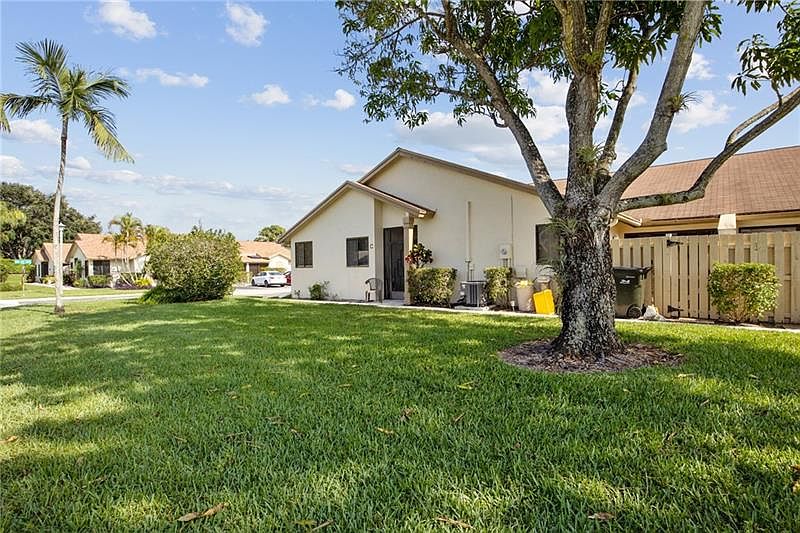 Welcome home! This light, BRIGHT & spacious 2/2 corner villa features sky lights to let Florida sunlight pour in! The renovated kitchen includes granite countertops, shaker cabinets with pull outs & a pantry. Master bedroom has 2 closets, including a walk-in! Large Florida room has vaulted ceilings & extra storage. Full indoor laundry room. BRAND NEW roof. 2 parking spots. Rainberry Bay, a 55+ gated community, includes 5 pools, tennis, pickle ball, bocce courts, a theater, clubhouse, gym, card rooms, craft room, library & more. Premium cable with HBO, internet, exterior maintenance, roof repair/replacement, interior & exterior pest control & landscaping is ALL INCLUDED as well! Pet friendly, allowing 2 pets. Seize this opportunity to live where others vacation... Sunny South Florida!