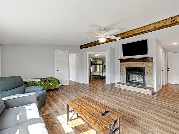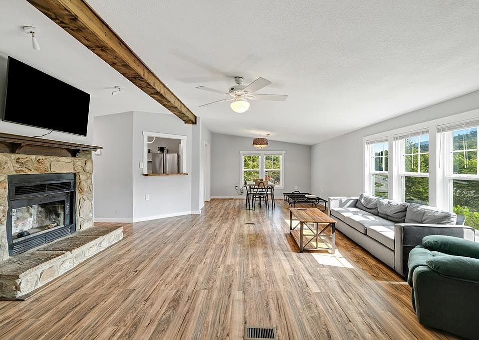 Rocked wood-burning fireplaceUpdated countertopsSleek stainless steel appliancesLuxury wood laminate floors