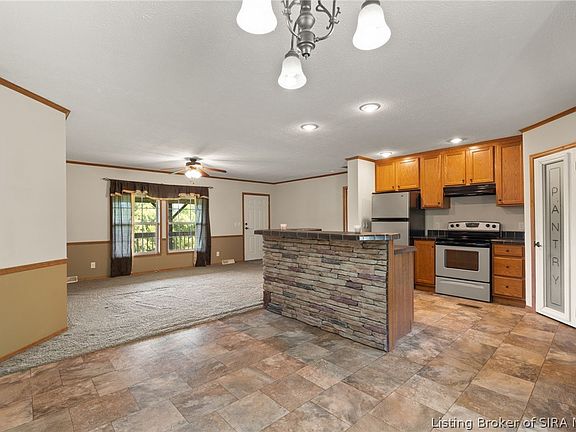 Looking for a home on acreage with a park like view? Look no further, Welcome to 1330 Pleasant Grove Road! This home is nestled on approximately 10.5 acres. Walking up to the front door, you will notice the inviting, large covered front porch, perfect for taking in the beautiful scenery. Step in the front door and you will see the open floor plan, perfect for entertaining guests. The kitchen includes plenty of cabinet space, a pantry, and features an island, making the kitchen versatile and easy to use. Need more storage or a workshop? The large detached garage offers plenty of space for storage, cars, or a workshop area. Rest assured knowing that the HVAC was replaced within the last year. Approximately 20 minutes from downtown Corydon, and approximately 10 minutes from Brandenburg, this location is very convenient!