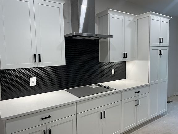 This all-brick stunner showcases timeless design with modern flair. The kitchen features crisp white cabinetry, a large island, and a striking black backsplash that adds the perfect pop of contrast.