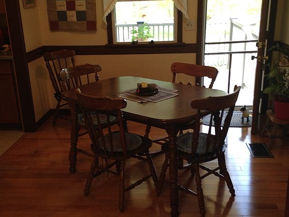 Hidden from the rd by a stand of fir trees, lovingly cared-for Raised Ranch is ideal for the family looking for their first home. This 1,869sq.ft., 3BR/1.5 BA charmer is clean as a whistle & ready to move into! Abundant sunlight highlights floors of wood, carpet, laminate & slate. The Master BR includes an attached 1/2 bath. Enjoy fair-weather dining & socializing on canopied deck. The finished basement features a roomy fam. rm. w/wd stove. Laundry rm & heated wrk area. Landscaped backyard, fenced w/shed.