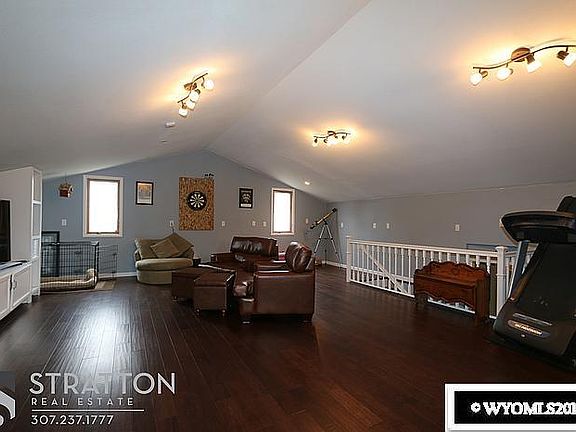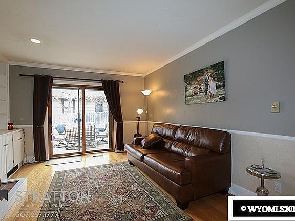 Charm! Charm! Charm! This lovely updated four bedroom, two bath home sits comfortably in the downtown big tree area. Beautiful hardwood floors throughout, nice open kitchen and dining area with windows that bring in natural lighting. Vaulted ceilings and skylights. The family room/loft over the garage area makes for wonderful entertaining, family movie night or great play area for kids. A bathroom has been plumbed in and ready to finish. Enter the backyard from the living room or master bedroom. The backyard offers a newly painted deck for entertaining with play set that will remain with the home. The two car garage, with alley access, has a new door and is heated. Call Debra Moerke or Chris Larramendy for more information, 307-237-1777.