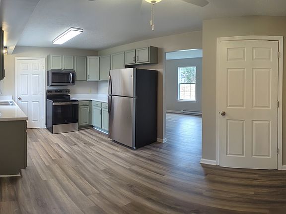 Large renovated open concept 3 bed/ 2 bath duplex unit with 2.5 car garage. Offering stainless steel appliances, luxury vinyl plank flooring, brand new carpet in bedrooms, and freshly painted walls. Updated completely throughout including lighting, fans, faucets, countertops, hot water tank, and much more. Electric baseboard heat and AC in house. Washer/Dryer hook up in unit. Private backyard in a country setting. Field Local Schools. Accepts housing vouchers. Animals accepted with fee. Tenant pays - Electric, Water. Owner pays for lawn maintenance, snow removal, sewage, and trash. Process- Background and credit check paid by possible tenant, but, reimbursed by owner if lease is signed. I will only work with one person at a time so there will be no lost cost to you for application fees like other rentals. I want this to be a good experience for you and a great fit for both of us. One year lease. At end of term would prefer another 1 year lease but negotiable.