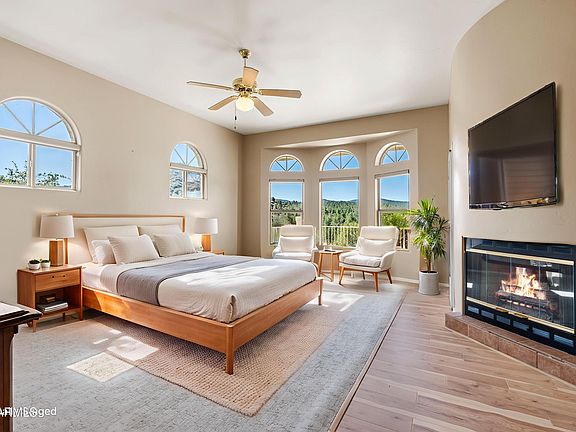 A hillside home with over 3,700 sq ft, low cost energy bill, & opportunity to personalize. 3 bed, 3 bath, office/flex room, workshop, main level living. The lower level provides it's own private deck, flexible living space & an optional 4th bedroom. Abundant natural light & storage. Fresh int paint 2025. New roof 2022. Views of Prescott National Forest. Mature, low-maintenance landscaping. The lot is not suited for extensive land use, but it's perfect for those who value views and convenience over yard work! An ideal retreat for a second home or a seamless option if you're looking to relocate and enjoy the Prescott lifestyle. Shared, private driveway. Seller is motivated & open to offers. Additional 4th toilet in workshop not counted in bath total. Flames shown in fireplaces are virtual.