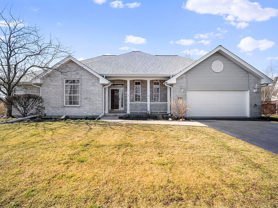 Enter the Prestigious BRONK ESTATES subdivision in Northern Plainfield to find your new sprawling ranch home! This charming brick front ranch with 2 bedrooms PLUS AN OFFICE/DEN and 1900 sqft is nothing short of stellar! Upon walking up to the home you'll notice the large front porch perfect for lounging outside on a sunny spring morning. the 2 car garage has an extra deep area cutout for storage or a workbench! The foyer will impress you with its view of the giant family room paired with towering vaulted ceilings and tons of natural light. This home is truly open concept with a modern layout allowing you to fully utilize your square footage. The kitchen has ample amounts of storage with tons of cabinets and even a large cabinet pantry. New refrigerator installed 2022. Above the kitchen sink is a bay window that lets in even more natural light, and space for plants or decor. The clean ceramic sink has a convenient garbage disposal for easy clean up. Bar stools can easily fit at the island to give extra casual seating! Head over to the large laundry room with a counter/cabinet arrangement for storage and even a deep utility sink! The master bedroom features MORE tall ceilings with its beautiful tray ceilings that contribute to its dramatic effect. You'll also find a large walk in closet, and a full private master bath with large windows, a huge soaker tub, dual vanities, and a walk in shower. Head down the hall to find the second bedroom connected to the Jack and Jill full bathroom, which joins to the Office/Den. The office/Den can easily be converted to a 3RD BEDROOM, as a closet cutout is already present (This area is from the hallway closet) and there is a door to completely close off the room like a normal bedroom. Both rooms share the full bathroom with a large linen closet and a full bath/shower combo. Head downstairs to the full unfinished basement just waiting for you to add a new life to! The backyard has gorgeous perennials planted along the FULLY FENCED IN yard that will soon bloom beautifully! Also get ready to enjoy time entertaining outdoors on your wooden deck and catch views of unique birds from the bird baths. Newer Roof and Extra Wide gutters/leaf guards installed 2016, water heater 2015, newer sump pump, New laminate floors in kitchen and dining area. District 202 Schools. The home's location is perfectly close to everything- RT. 59 for endless shopping and restaurants, Fox Valley mall, Downtown Plainfield, even close access to I55 for an easy commute! Sold as is. Arrange a private tour of this wonderful home today before someone else does!
