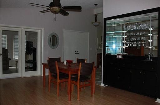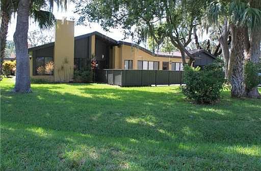 Lovely 2 bedroom villa with extra office/den plus newer family room looking at large open green space, attached 2 car grage, A/C'd workshop.