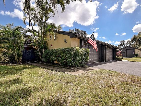 Welcome to Randolph Farms! The residents enjoy the Resort like feel located on the Intracoastal. The park like setting includes 100 well maintained units located on 25 acres. This one floor two bedroom two bath villa is ready for your personal touches. A private gated courtyard includes a 17 x 12 screened patio with a covered vaulted wood ceiling that welcomes you into the front entrance. The foyer has a high vaulted ceiling as does the spacious living/dining room. The oversized detached garage has a covered entrance to the front patio so that you don't have to run between the raindrops! Make this unit your own with customized improvements and personal touches. Enjoy the amenities available to all residents that include community pool overlooking the intracoastal, two tennis/pickle ball courts, boat dock with fishing pier and clubhouse for community activities. You are minutes away from popular restaurants, shopping, and easy access to all the Gulf Beaches.