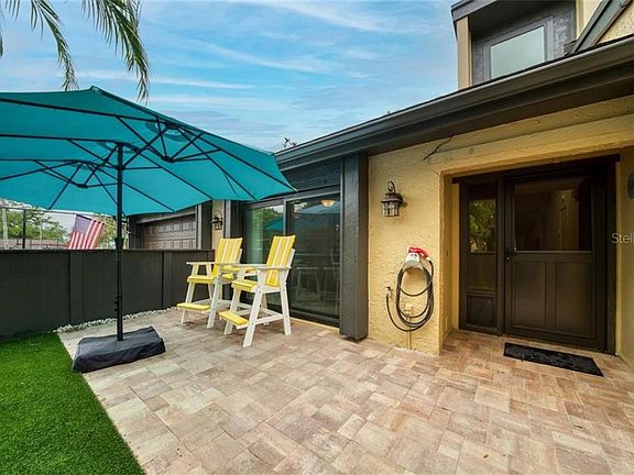 Welcome home to this maintenance free patio home in the desirable pet friendly, waterfront community of Randolph Farms!! This one level spacious condominium has two outstanding courtyards and an over-sized two car garage. Vaulted ceilings mirror a light airiness that exemplifies the comfortable feeling and ease of lifestyle so sought after by today's homeowners. Beautifully updated kitchen is fully equipped with stainless steel appliances, attractive backsplash and granite counter tops, separate pantry, and adjoining breakfast room with views over the spacious courtyard. A separate formal dining area provides ample room for entertaining. Spacious great room has an inviting fireplace and a separate oversized family room may be used as a media area or third bedroom. Adjacent to the family room is a separate area currently used as an office and would make the perfect den as well.. Numerous updates include not only the lovely kitchen and baths however there are new impact resistant windows, newer roof systems and garage door. The master suite is quite spacious with dual closets plus a walk in closet, gorgeous bathroom with lovely walk-in shower and separate tub. Enjoy watching the sunset on your private large patio with Intracoastal WATER VIEWS, new pavers and dog friendly synthetic turf. Oversized two car garage, extensive storage, and lots of privacy make this a rare find. Perfectly positioned in the very popular Randolph Farms community-just steps to pool, Intracoastal, clubhouse and tennis. Minutes to beaches, shopping and restaurants yet tucked away in a residential area. Easy access to Tampa Airport, St Pete, and Clearwater.