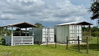 This Horseperson's dream property is a perfect getaway in the paradise of Pine Island, close to fishing, boat ramps, and many waterfront restaurants and bars. 2.56 acres with stellar improvements. Property has well water, city water, and electric. There is a large gravel pad for RV's with hook ups, two shipping container,(45 ft and 20 ft)with electric and lights for feed, hay, tack, and equipment storage. Two pole barns, one with two 10x10 stalls and one with two 12x12 stalls and custom swing gates. Both pole barns are elevated and matted. Property is fenced with no climb and electro braid top line to keep critters out and horses in. 16 ft entry gates, new well pump, and the east fence line was replaced in 2025. Quiet and peaceful on a dead end road, safe and functional. Very well maintained. This property is located on the highest elevation on the island and did not flood during the past 3 storms. Zoning is AG-2 and a single family residence is allowed. Horse trailer does not convey