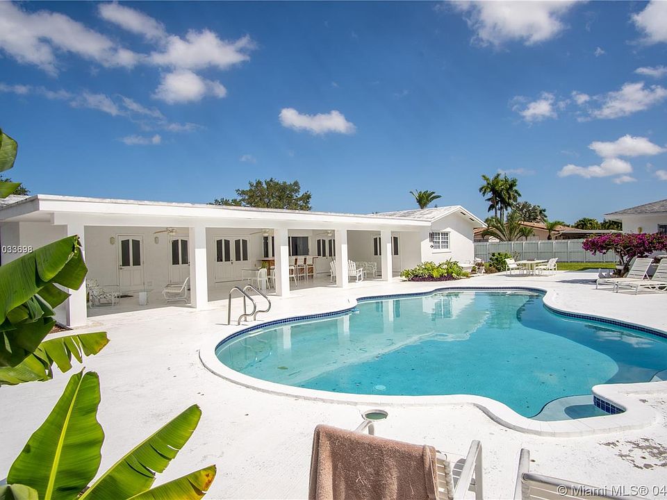 Fantastic ranch-style home tucked away in the tranquil neighborhood of Pine Shores. This is the perfect home for a large family, a family working from home and for those who love to entertain. This home has a split floor plan and features 2,749 sqft of living space - 6bedrooms/3bathrooms plus a detached spacious laundry room with washer and dryer (can be easily be converted into a guest house/in law quarters by just added a bathroom) large terrace overlooking the pool on a gorgeous 18,750 sqft corner lot. Plenty of side yard space to keep an RV and a boat. Pine Shores is one of the most sought-after neighborhoods in South Florida due to Grade A schools, family-friendly neighborhoods & quiet streets. As per the seller double car garage converted into two bedrooms done legally & permitted.