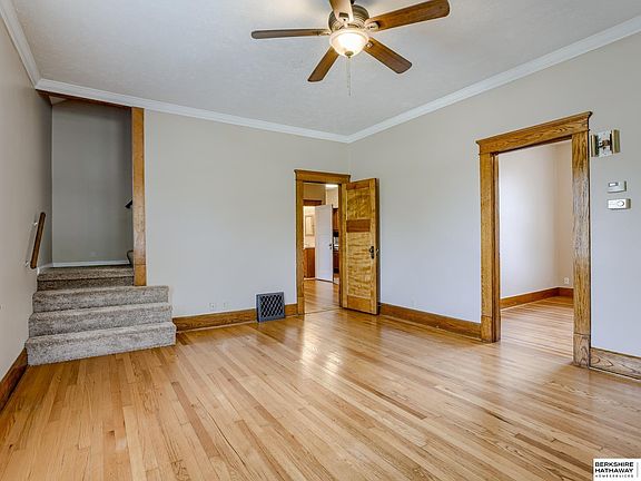 Wow! Over 2,000 sq ft in this 1.5 story property located on the corner of a double wide level lot in the heart of the 'Old Millard/Lumberyard' district. Conveniently located to three interstate access points. Awesome wood work & wood floors on the main level. New stainless steel appliances on the main with 2nd kitchen in the basement mother-in-law suite. Freshly painted with new carpet on 2nd floor and basement. Low maintenance vinyl siding on the exterior. 1 car attached garage with a tandem 2 car and additional 2 car garage with extra walkup storage. Cute as can be, great for collector, small business, or hobby person with 5 total garages. The 2 car has a 15’10” door opening by 29’6” depth. The tandem has an 8’ door opening by 32’6” depth.