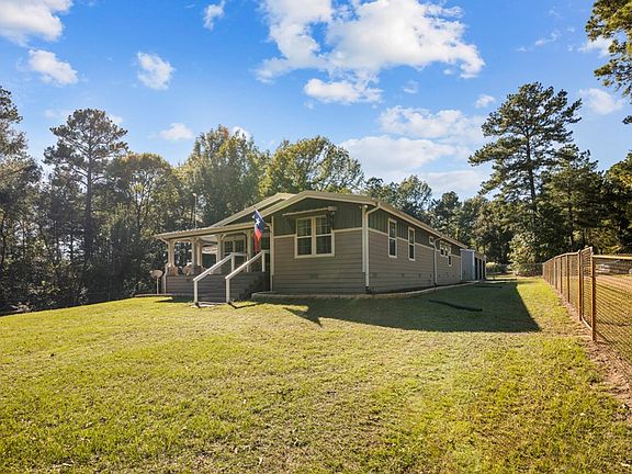 This immaculate triple wide with many upgrades sits on 16.1 acres along the Texas Forest Trail. Used as a getaway house for the last 9 years, it is being offered turnkey AND fully furnished (see photos) with everything from furniture to dishes to linens! The recently repainted wrap around covered porch has ample seating for outdoor dining and watching birds and other wildlife. There is currently a Wildlife Management Ag exemption on the property. A spring fed creek provides water and wooded areas provide natural habitat for many native species. Mowed trails transverse the property for hiking and exploring on ATVs. The 1,200 sf triple door garage/shop has overhead storage, shelving, workbench, refrigerator and chest freezer.