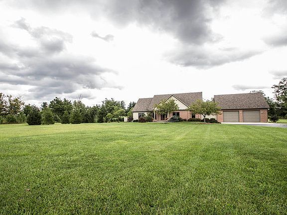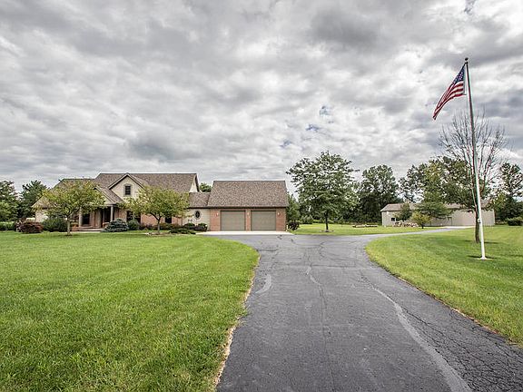Back on Market! PRICE REDUCTION! Beautiful Custom Built Home, quiet retreat on 7.03 acres Spacious kitchen with stainless steel appliances perfect for entertaining friends and family. First floor master bedroom, large great room with vaulted ceiling and wood burning fireplace. Large bedrooms with walk-in closets. 1600sq ft of finished basement, geothermal heat. Oversized 2 car garage, new roof in '07, 3200 sq ft of heated work shop/pole barn--room for boat or camper or additional entertaining area. In ground pool with beautiful landscaping. Very private. Easy access to Columbus airport. Country retreat minutes from the city.