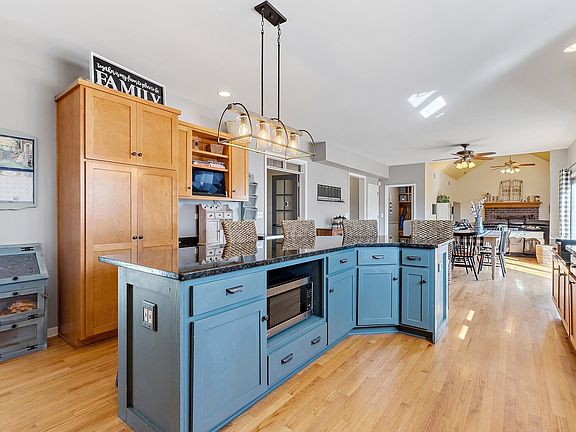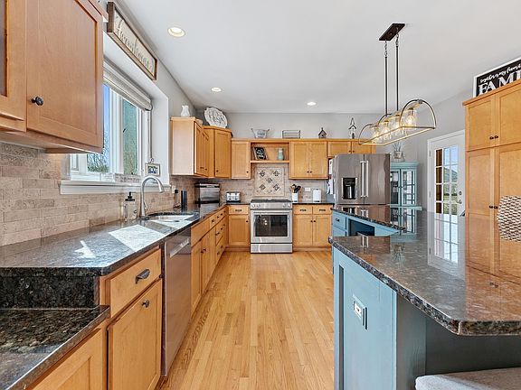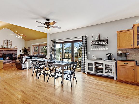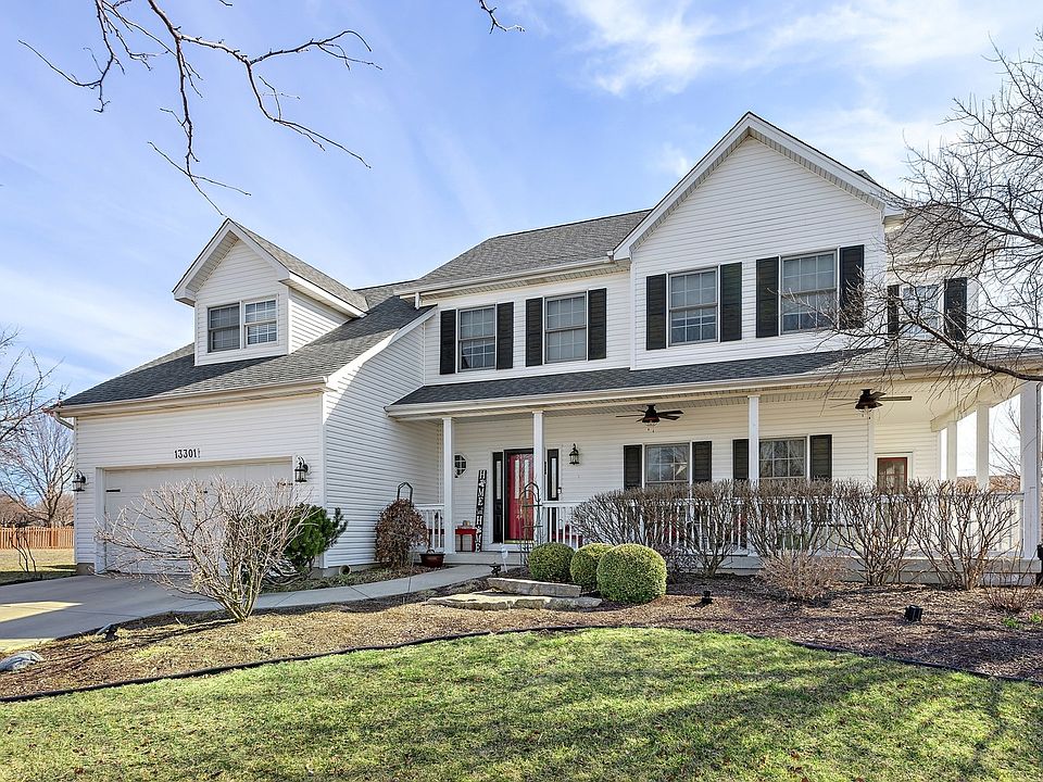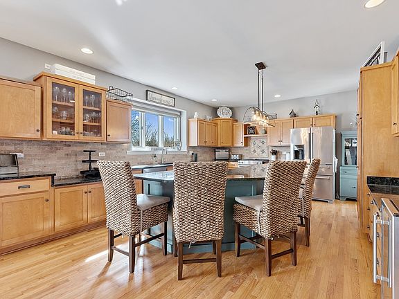 Beautiful custom home North Plainfield with large lot with in-ground swimming pool and great outdoor space for entertaining. Front porch with dual modern fans to enjoy the outdoors. Huge gourmet kitchen with large granite island, SS appliances, tile backsplash, huge eating area, and hardwood floors opens to family room with grand vaulted ceiling and fireplace. Office off the kitchen with double french doors. Master Suite with vaulted ceiling, walk in his and hers closets, and luxury bath with separate shower, commode, dual sinks and tub. One bedroom is very oversized with ballet dance area and walk in closet. 3 other bedrooms upstairs and hall bath. Fans and overhead lights in all bedrooms. Amazing finished basement with huge custom bar with bar sink. Furnace 2017, Roof 2015, Water heater 2013, dishwasher 2020, new oven, refrigerator 2018 and Whole house attic fan. Plainfield North HS.