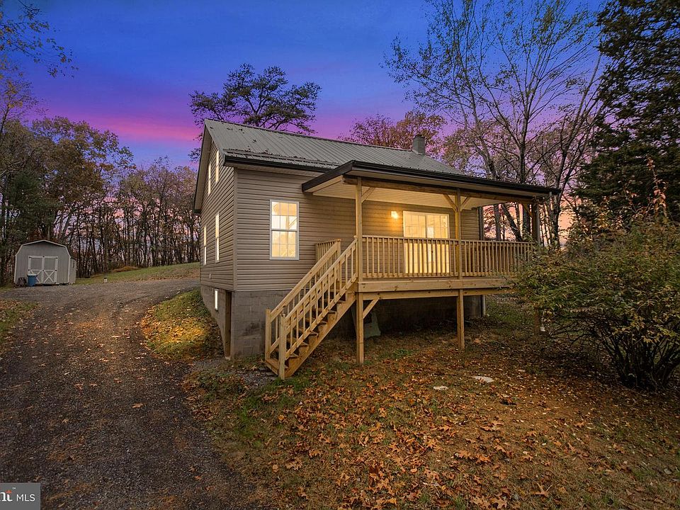 PRIVATE and peaceful country setting! Recently renovated home in 1 ACRE. New siding, aluminum roof, new paint, flooring, replacement windows, bathrooms. Large covered deck at the front, leading to main level featuring an eat-in kitchen, spacious living room, laundry room, 1 bedroom and a large full bath. The upper level has two more bedrooms and a half bath. There is a porch in the back and a shed. Unfinished basement with exterior entrance.