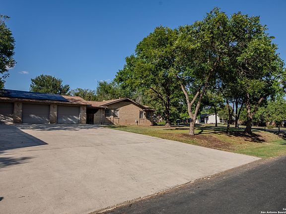 Welcome to 13303 Flying W Trail! Nestled on a quiet corner lot surrounded by mature trees, this warm and inviting 4 bedroom 2 bath single-story home blends rustic charm with everyday comfort. From the moment you arrive, you're greeted by a welcoming front porch, natural wood accents, and the timeless appeal of a country-style exterior. Step inside to discover exposed wooden beams in the living room leading to a cozy stone fireplace and tile floors that run throughout the home. The kitchen and dining area offer plenty of space perfect for both relaxed evenings and entertaining guests. Solar panels allow for reduced energy bills and the water softener adds filtered water for all to enjoy. While outdoors, enjoy the privacy and shade of established trees, with plenty of space for gardening, hosting, or simply relaxing. The oversized corner lot provides extra elbow room, potential for expansion, and a true sense of space and tranquility. Don't wait! Make your appointment today!