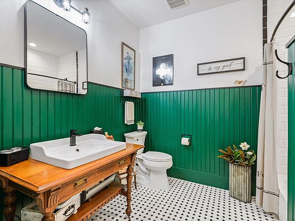 A charming modern farmhouse nestled in the heart of Santa Fe, TX. This beautifully designed 2-bedroom, 2-bath home combines rustic charm with contemporary comfort, offering an inviting open floor plan perfect for modern living. Step inside to discover an open joist/beadboard ceiling, wood laminate flooring and shiplap accent wall. The island kitchen is a chef’s dream, featuring a classic farmhouse porcelain sink, Kitchen Aid appliances, ample counter space, and a butler’s pantry with floor-to-ceiling shelving for all your storage needs. Both bathroom showers are tiled from floor to ceiling, offering a clean, spa-like feel. The laundry room doubles as a convenient office space, ideal for remote work or managing household tasks. Enjoy the Texas breeze on your front and back porches or relax in the comfort of your thoughtfully designed home. With its 2-car oversized garage, quality finishes, and charming details, this property perfectly blends function and farmhouse flair.