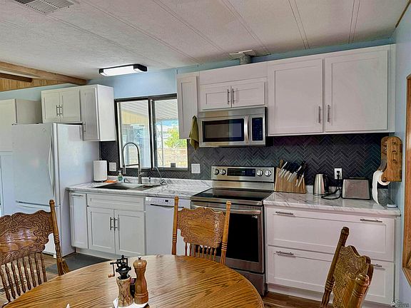 Highly upgraded 2-bedroom, 1-bath home nestled on a spacious corner lot in desirable foothills location with RV access and two RV hookups (50 amp & 30 amp). This move-in ready property features an all-new kitchen with custom backsplash and Formica countertops, fresh interior and exterior paint, and newer life proof vinyl plank flooring in home & AZ room. Bathroom has new shower, vanity & tile flooring. Home has been re-plumbed for peace of mind. Inside, you’ll find a washer and dryer (included) and a fully enclosed spacious AZ room—perfect for extra living space or a hobby area. Enjoy added storage with three sheds (one new shed with water softener & R/O system). Outside offers a covered patio, double and single gates, and a 2-car attached carport. A great setup for anyone needing room for toys, tools, or guests!