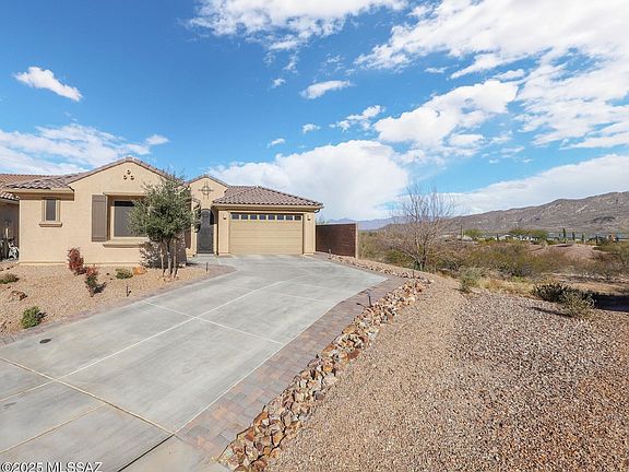 3 Car Garage!! Backyard has New Summerset built-in natural gas BBQ Grill w/side burner on an island bar & matching Fire-table. The perfect haven for entertaining or just relaxing under the ramada. Large porch is all ready for that big screen tv. Extra 900 sqft of matching tile for all carpeted areas. Better than new with all the upgrades in this pristine 4 bd, 2.5 ba + den split floor plan home. Stunning mountain views w/only one immediate neighbor & no one behind you on a premium lot. Luxury designs everywhere including custom tv console & executive desk; wrought iron security door; solar screens; stacked cabinets w/soft close & pull-outs, water softener, surround sound speakers & large showstopper island! Home was built as a dream home in mind, no expense spared. Walking path behind home leads to the top-notch amenities. A+ Vail School Dist w/brand new K-8 school and less than 10 minutes from shopping and food. Upgrade list available.