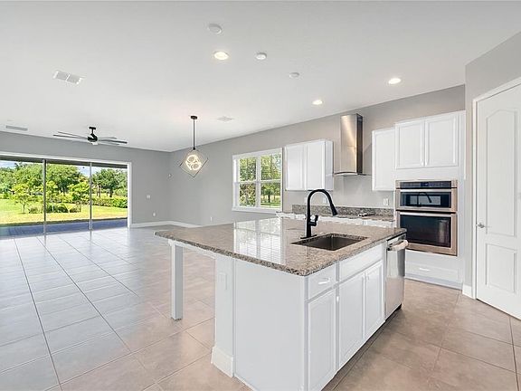 Live in luxury at Eagle Creek! This 4-bed, 3-bath home offers 2,267 sq ft of beautifully maintained living space on a quiet cul-de-sac corner lot with stunning golf course views. Step inside to discover a bright, open-concept floor plan adorned with ceramic tile flooring, soaring ceilings, and an abundance of natural light. At the heart of the home, the gourmet kitchen is a true showstopper, featuring granite countertops, a center island with breakfast bar seating, and seamless flow into the spacious living and dining areas, ideal for hosting and everyday living. The expansive primary suite is a private retreat, complete with a dual-sink vanity and oversized tile shower. Three additional well-sized bedrooms and two full bathrooms ensure comfort for family members or guests, while a dedicated interior laundry room adds convenience. Enjoy peaceful mornings and relaxing evenings on the covered rear lanai, overlooking a beautifully landscaped backyard with serene GOLF COURSE VIEWS, perfect for outdoor dining or simply unwinding. Enjoy resort-style amenities: championship golf, fitness center, pool, tennis courts, basketball court, playgrounds and more. Prime location near Lake Nona, Medical City, and Orlando Airport.