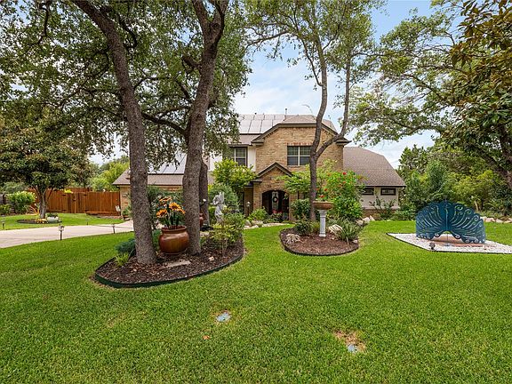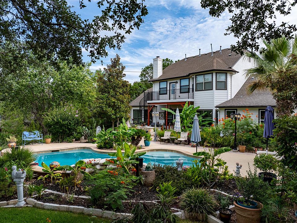 PRIVATE OASIS ON THE MOUNTAIN TOP! This stunning home has been extremely well cared for and the yard is AMAZING! The home is at the end of a dead-end street so it is very peaceful and private. The large lot offers Hill Country views from the lush back yard pool area. Cook some BBQ on the built-in grill while you swim in the pool. The home has a 7.5 Kwatt Solar system with warranty. There was a flex space added behind the garage with a mini-split that is perfect for a home gym or cave/craft room. The sale includes an adjoining small 50' x 36' lot at the end of the street currently being used for a carport and additional garden space. The backyard is complete with 2 sheds and a greenhouse! There is plenty of lawn space left over for playing! Other recent updates include interior/exterior paint, recent water heater replacement, both HVAC unit replacements, new carpet, new pool pumps, privacy fencing. The upstairs has 3 LARGE bedrooms, a big game room, and a balcony overlooking the pool and hill country. You need to see this one! The pictures just don't do it justice. MAKE SURE TO SEARCH THE ADDRESS ON YOUTUBE FOR A VIDEO TOUR!!