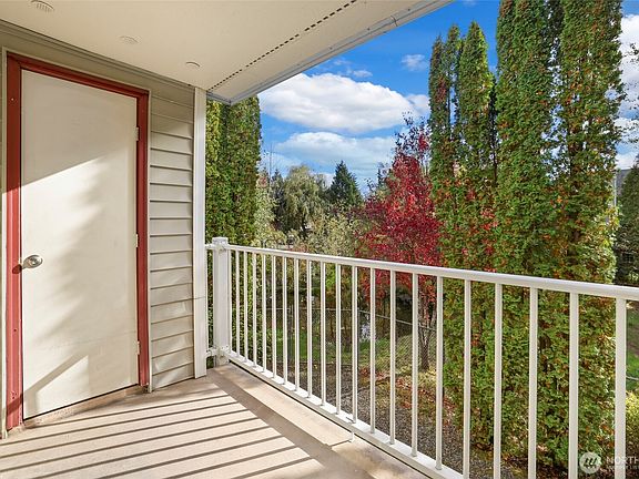 Beautifully maintained 2-bed, 2-bath end unit is bathed in natural light from the south and west. A large gas fireplace anchors the open-concept living area, with dimmers to set the perfect ambiance. Enjoy newer paint, carpet, and serene woodland views. The private balcony offers storage, plus a new high-quality water filtration system and water heater. The spacious primary suite features dual closets and an ensuite. The second bedroom overlooks the pond and fountain with dual closets. Designated carport and generous guest parking. HOA covers water, sewer, gas, and trash. Community amenities include a gym, clubhouse, and park. Walk to Trader Joe’s, dining, and more, with easy access to Lake Meridian trails, Kent Station, and Hwys 18 & 167.